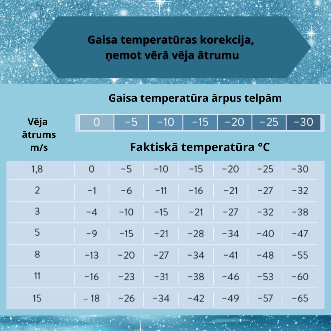 Atgādinām, ka aukstā laikā atsegtās ķermeņa daļas var apsaldēt arī tad, ja temperatūra ir vien dažus grādus zem nulles!